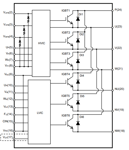 ساختار داخلی ماژول PSS15S92F6-AG در زیر نشان داده شده است.