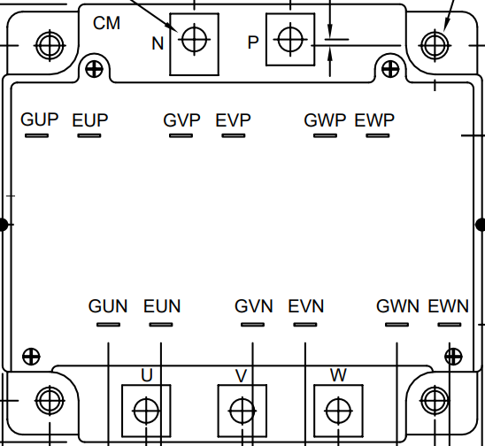 شماره پایه های ماژول CM100TU-24F در زیر نشان داده شده است.