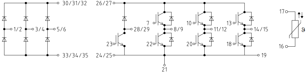 ساختار داخلی ماژول FP75R12KT4-B16 در زیر نشان داده شده است.