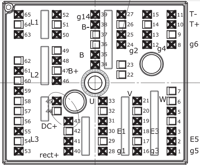 شماره پایه های ماژول SKIIP24NAB12T4V1 در زیر نشان داده شده است.