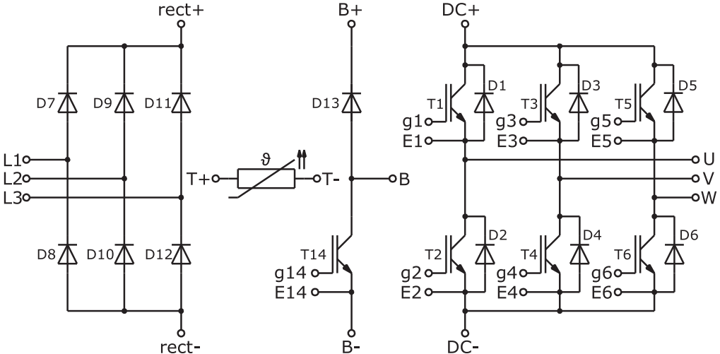 ساختار داخلی ماژول SKIIP37NAB12T4V1 در زیر نشان داده شده است.