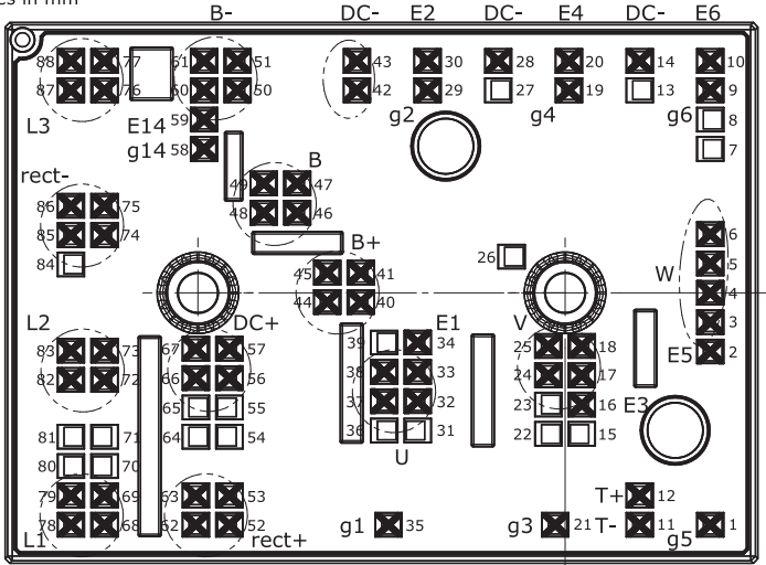 شماره پایه های ماژول SKIIP37NAB12T4V1 در زیر نشان داده شده است.