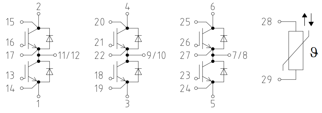 شماره پایه های ماژول FS450R12KE3در زیر نشان داده شده است.